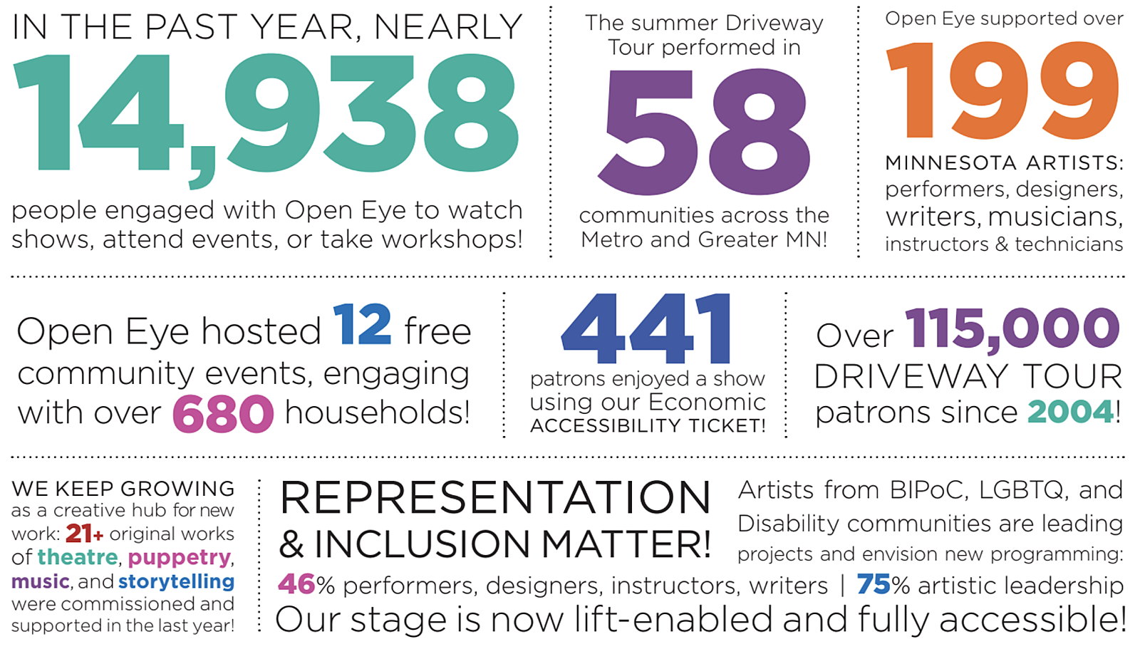 Individual support is the lifeblood of Open Eye. We're raising $10,000 during Give to the Max to ensure a strong finish to our season and launch boldly into 2026. Play a starring role in bringing eye-opening art to audiences of all ages!