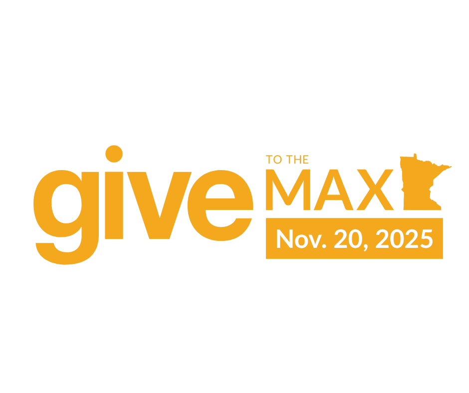 Suggested visual accessibility description for GTMD25 logos: "Word mark for Give to the Max, Nov. 20, 2025, with the shape of Minnesota."