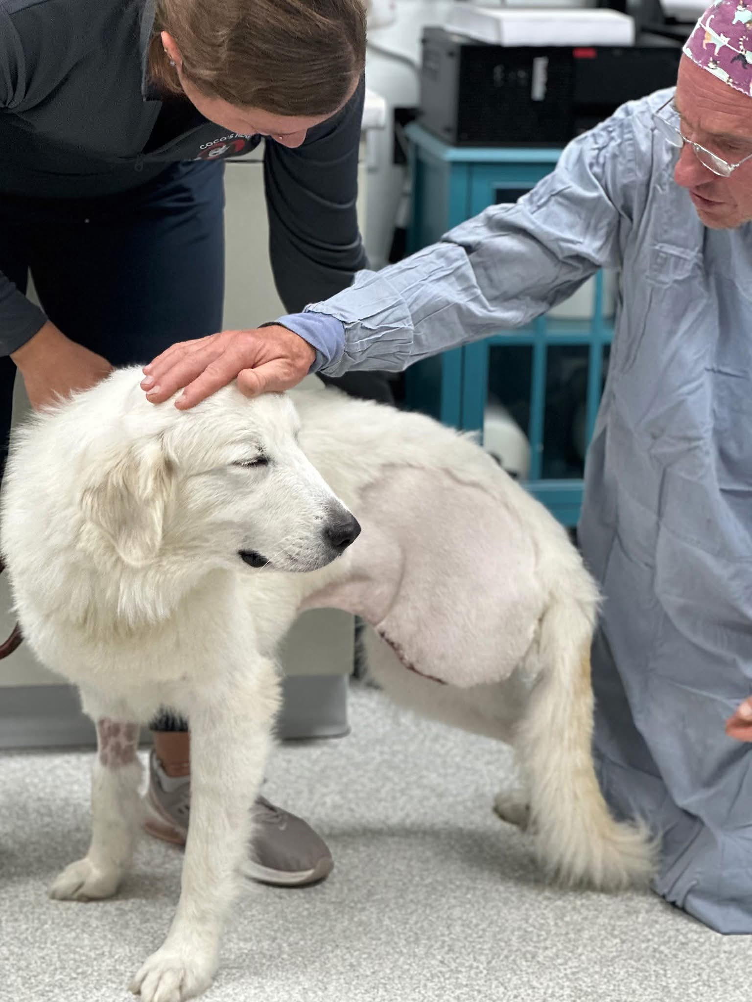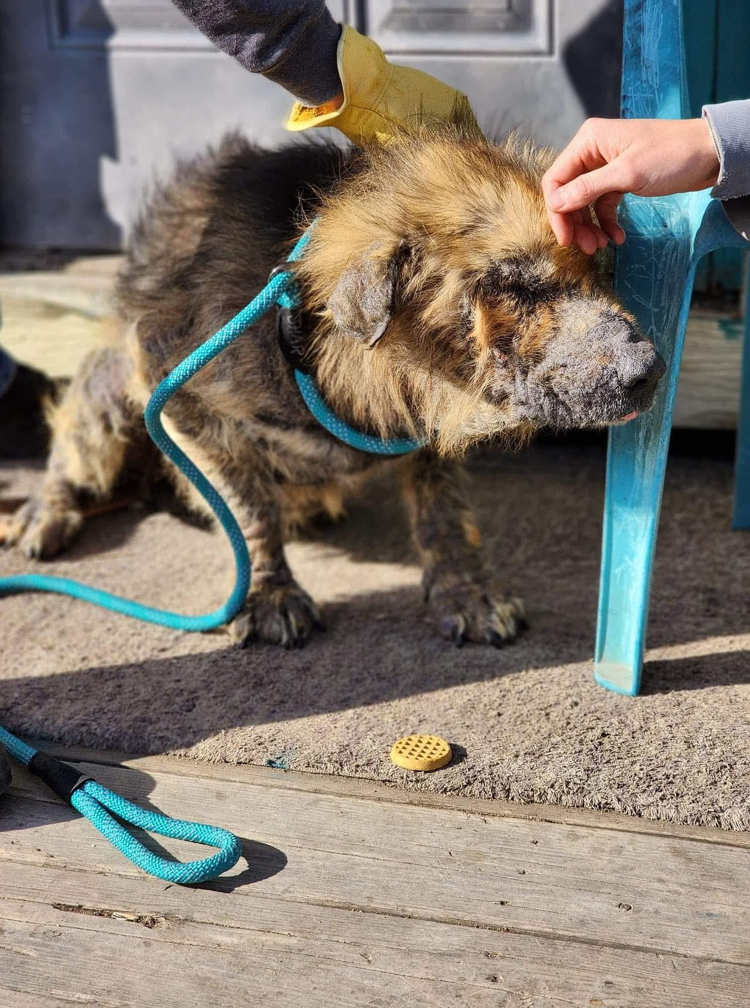 Nordy, receiving emergency care. Nordy is now healthy and loved in his forever home!