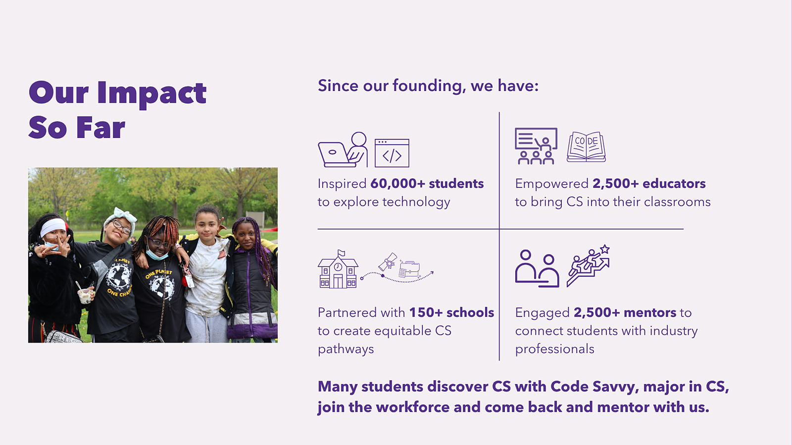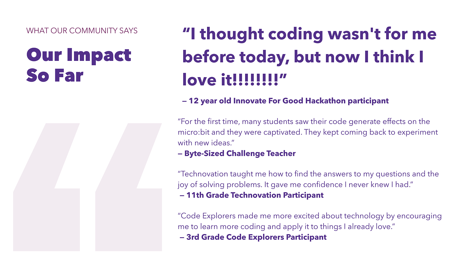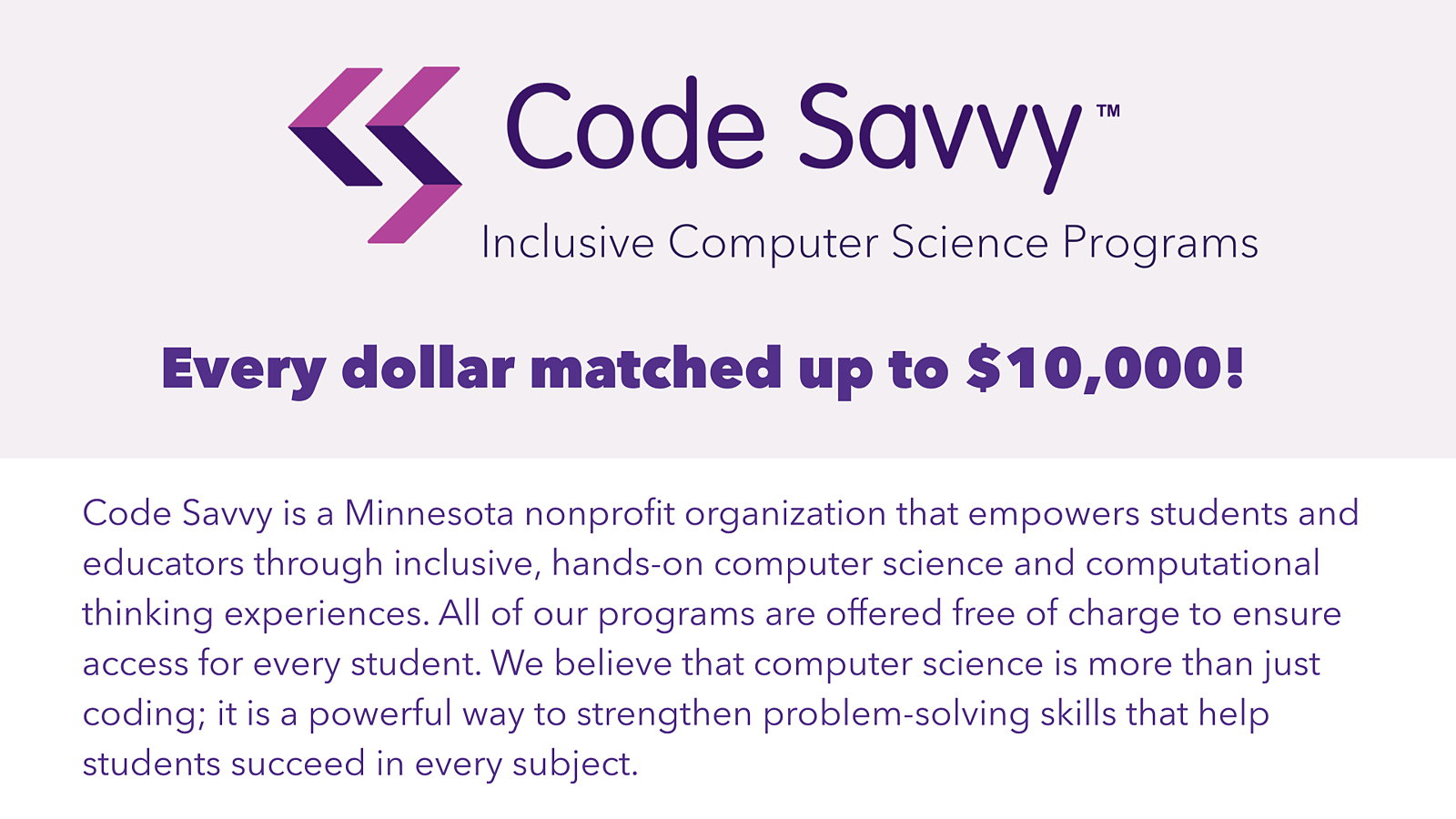 PROGRAMS: Technovation Girls Minnesota, Code Explorers, Byte-Sized Challenge, Spark Scholarships, Educator Professional Development
