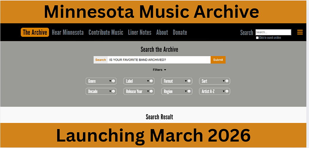 The Minnesota Music Archive celebrates ALL Minnesota music. We have the ambitious goal of preserving every obtainable recording by Minnesota musicians, from mainstream names to independent and small-label artists. It is a promise to past, present, and future Minnesota musicians that their music will matter for generations to come. There are over 1200 titles archived so far, across genres, eras, and cultures. However, we need your help to make the Minnesota Music Archive a reality.