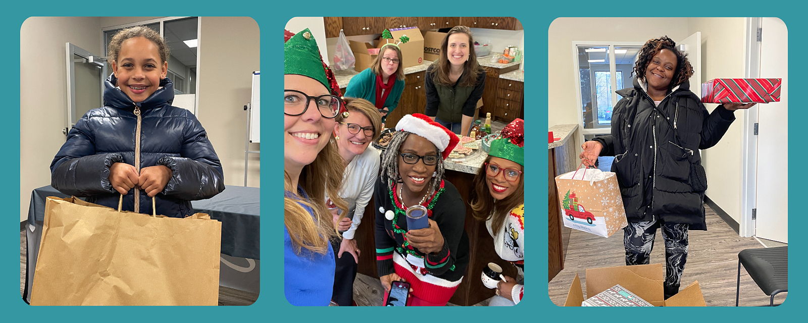 Above: Emerge Mothers Academy hosts an annual Thanksgiving Meal Giveaway and Christmas Boutique for our families.