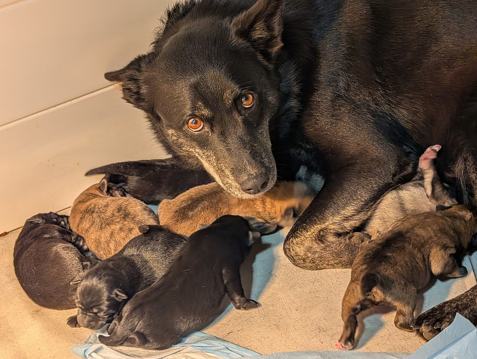 Taylor didn’t arrive alone — she came carrying the biggest responsibility of her life: an entire litter of seven puppies depending solely on her. If we didn't say yes, she would have had the puppies outside...in the cold.