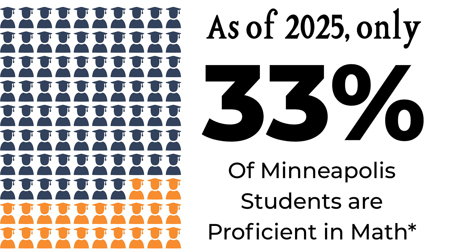 Strong math skills are essential for high school graduation and post-secondary opportunities—opening doors to college, careers, and economic mobility. Yet currently, only 33% of students in Minneapolis are proficient in math, and students of color and those from low-income families face the steepest barriers to success. We know something powerful: with the right instruction and support, every student can excel in mathematics.