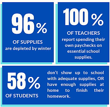 Our goal during this giving season is to restock 5,000 students and 200 classrooms. With your help, we can make it happen!