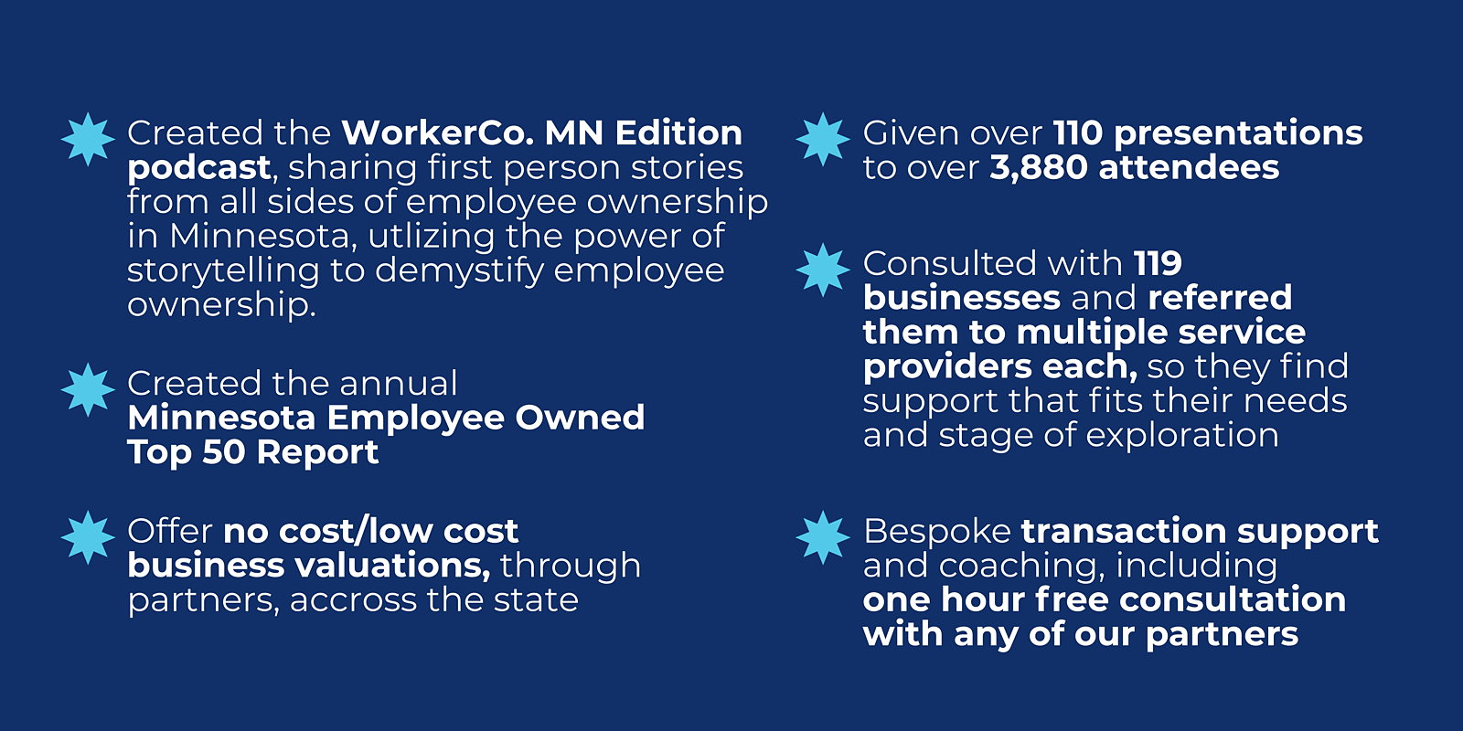 Additionally, we encourage you to recommend MNCEO to your favorite Minnesota businesses. Help them consider employee ownership as a path to a lasting, inclusive legacy.