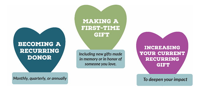 Together, maximize your giving and let’s triple our efforts to make these goals a reality! There are three ways to add a heart to our count: