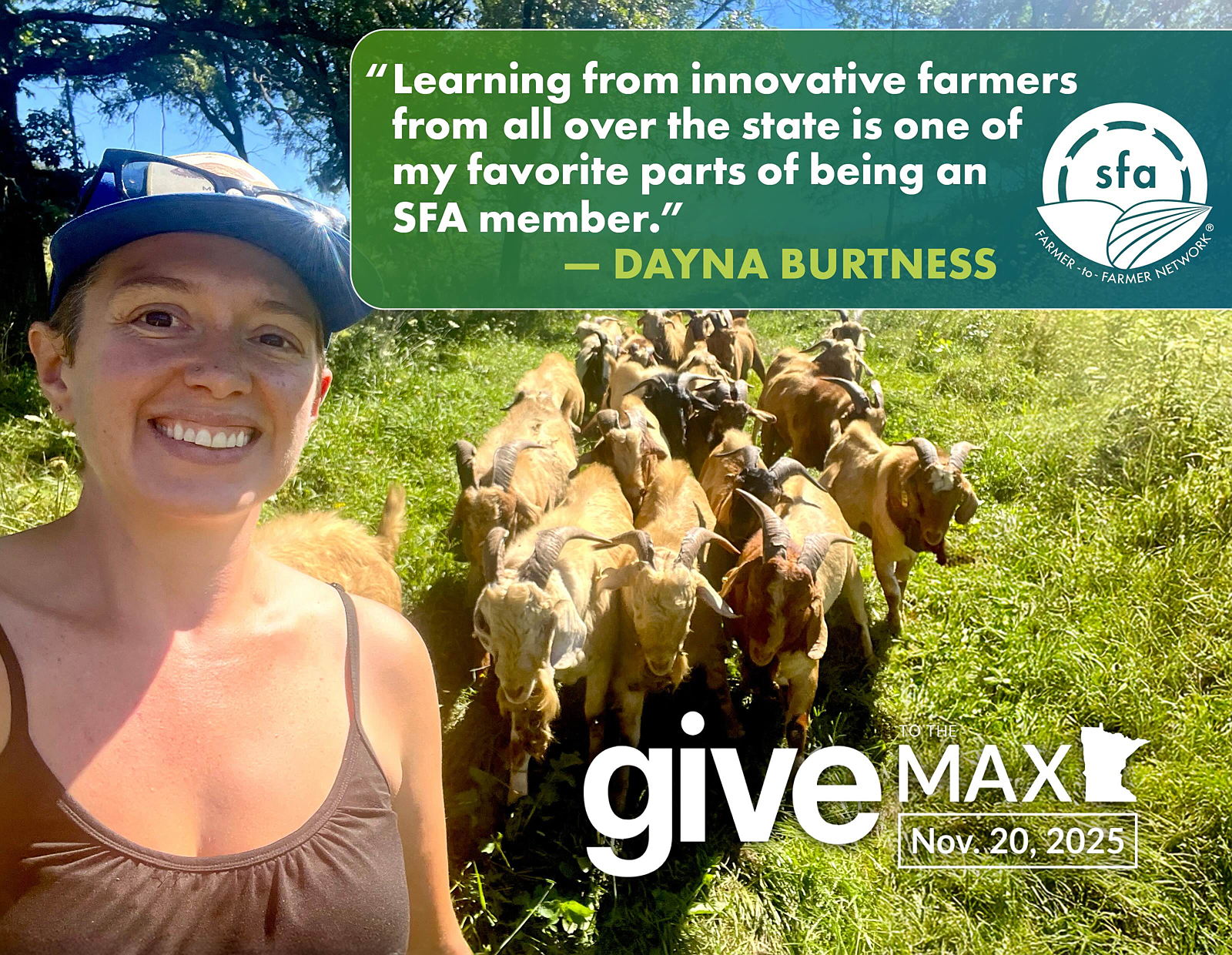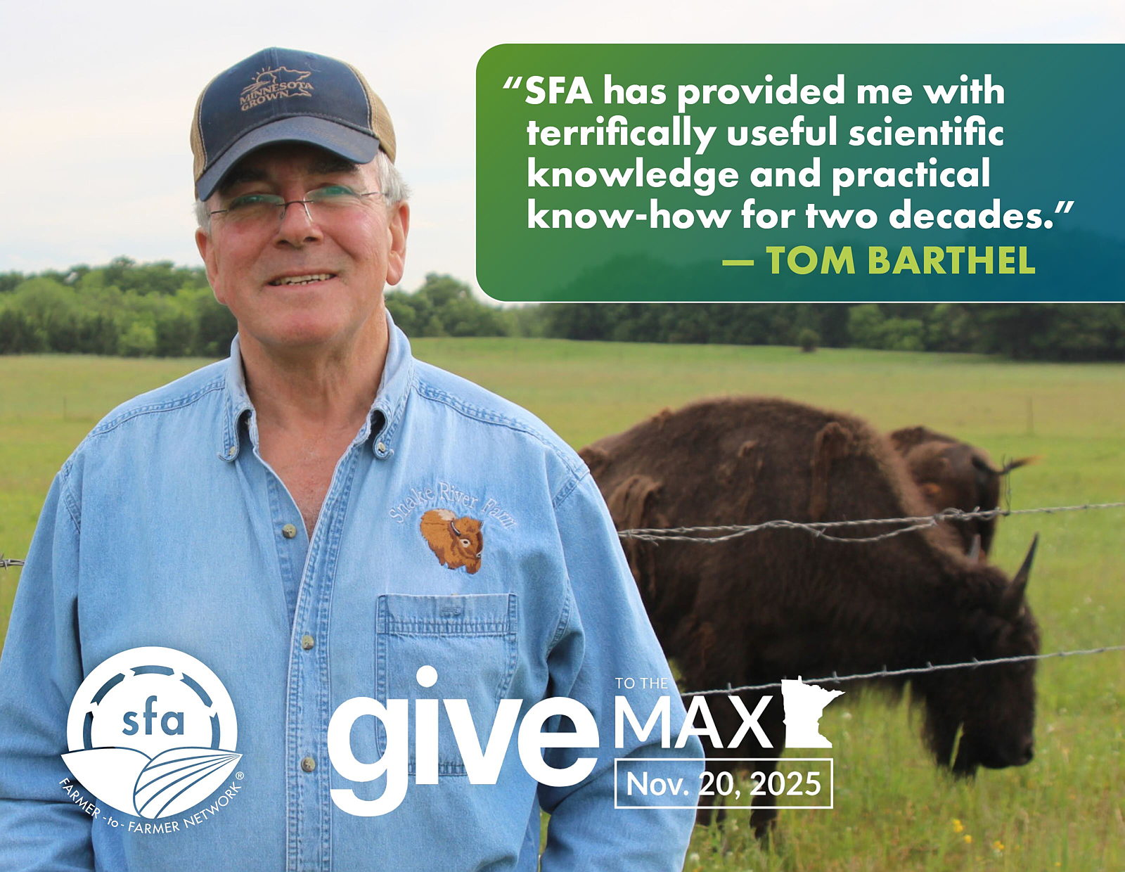 This Give to the Max Day we invite you to make a donation to support vital, farmer-led education, or to join us as a member of SFA. Either way, your gift will count towards our $10,000 goal.