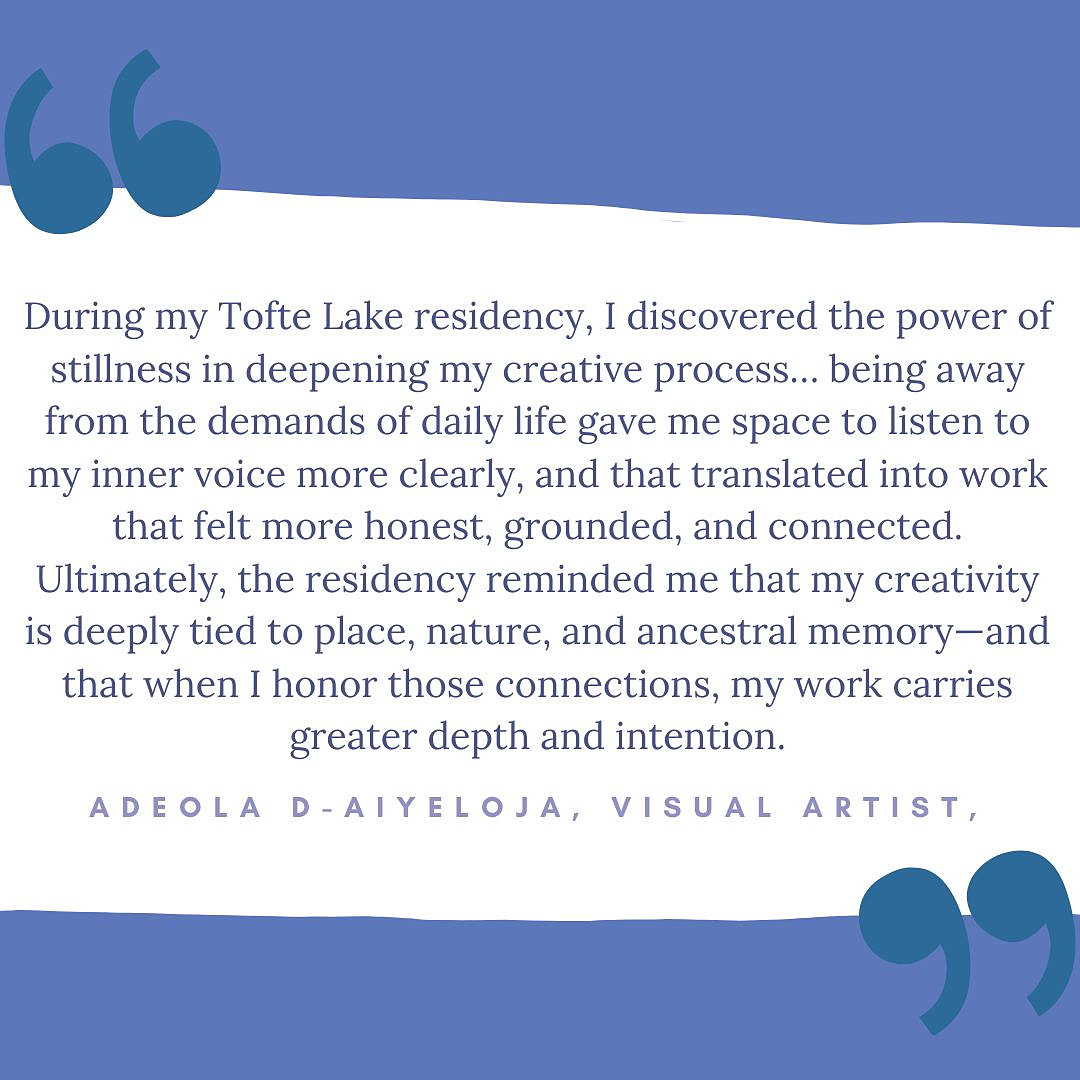 Every day, we benefit from art, but rarely do we truly support the artists who make it. Art connects us to our humanity. It inspires, provokes, and comforts. Now more than ever, we need art, and the artists who create it, to help us understand and empathize with one another in an increasingly fractured world. In this moment, we need the exact opposite: peace, space, rest, and healing. Tofte Lake Center provides this essential, gentle space for artists to recharge and recenter their artistic practice which has the power to impact us all.