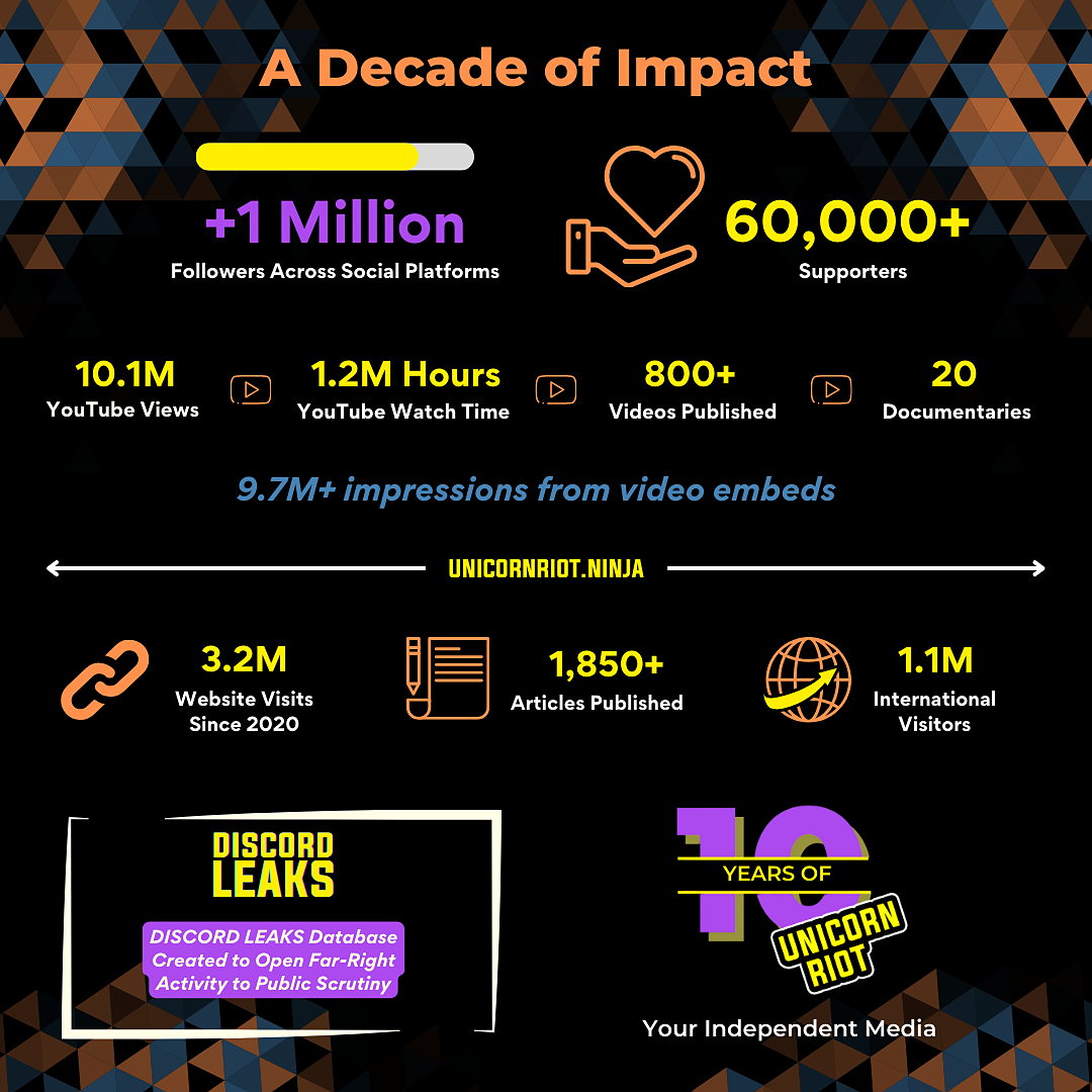 With over 1 million followers across platforms, Unicorn Riot’s reach continues to grow.