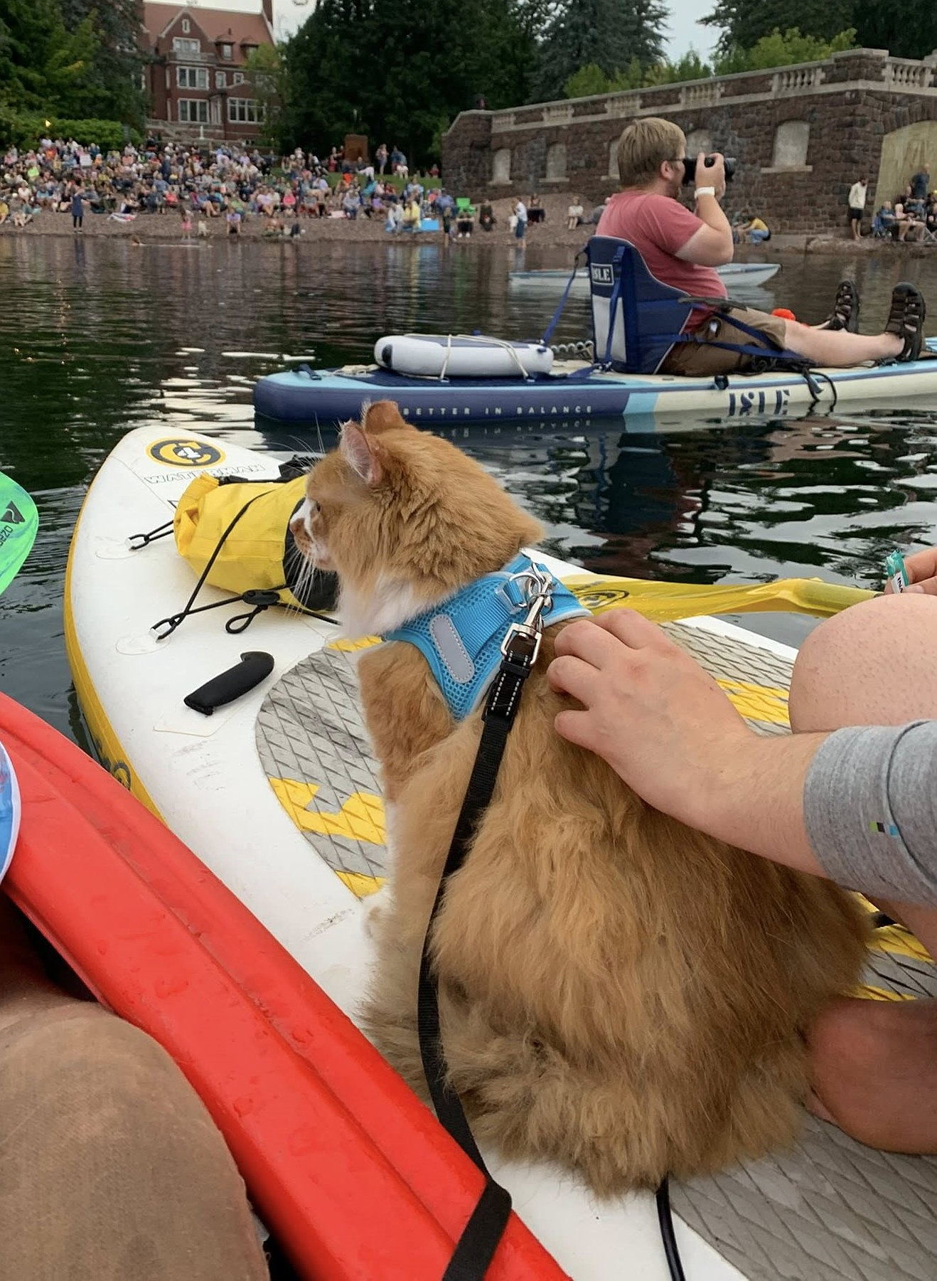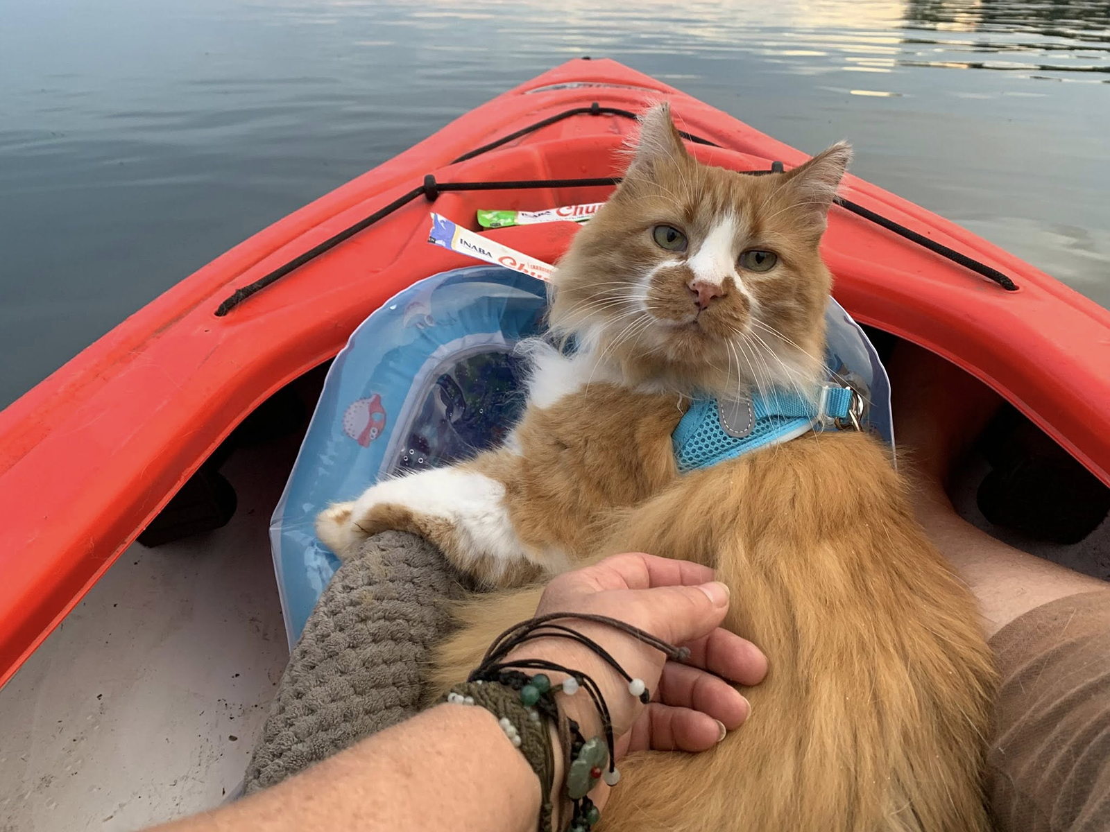 One of our foster Mom's, Rachelle fostered him Even though he adjusted to indoor life, he missed the outdoors. She started taking him on leash walks with her dog to explore. She ended up adopting him and this summer he enjoyed going Kayaking with him at a Glensheen event by the water. What a happy and much safer life he now has with Rachelle and the other pets! immediately!
