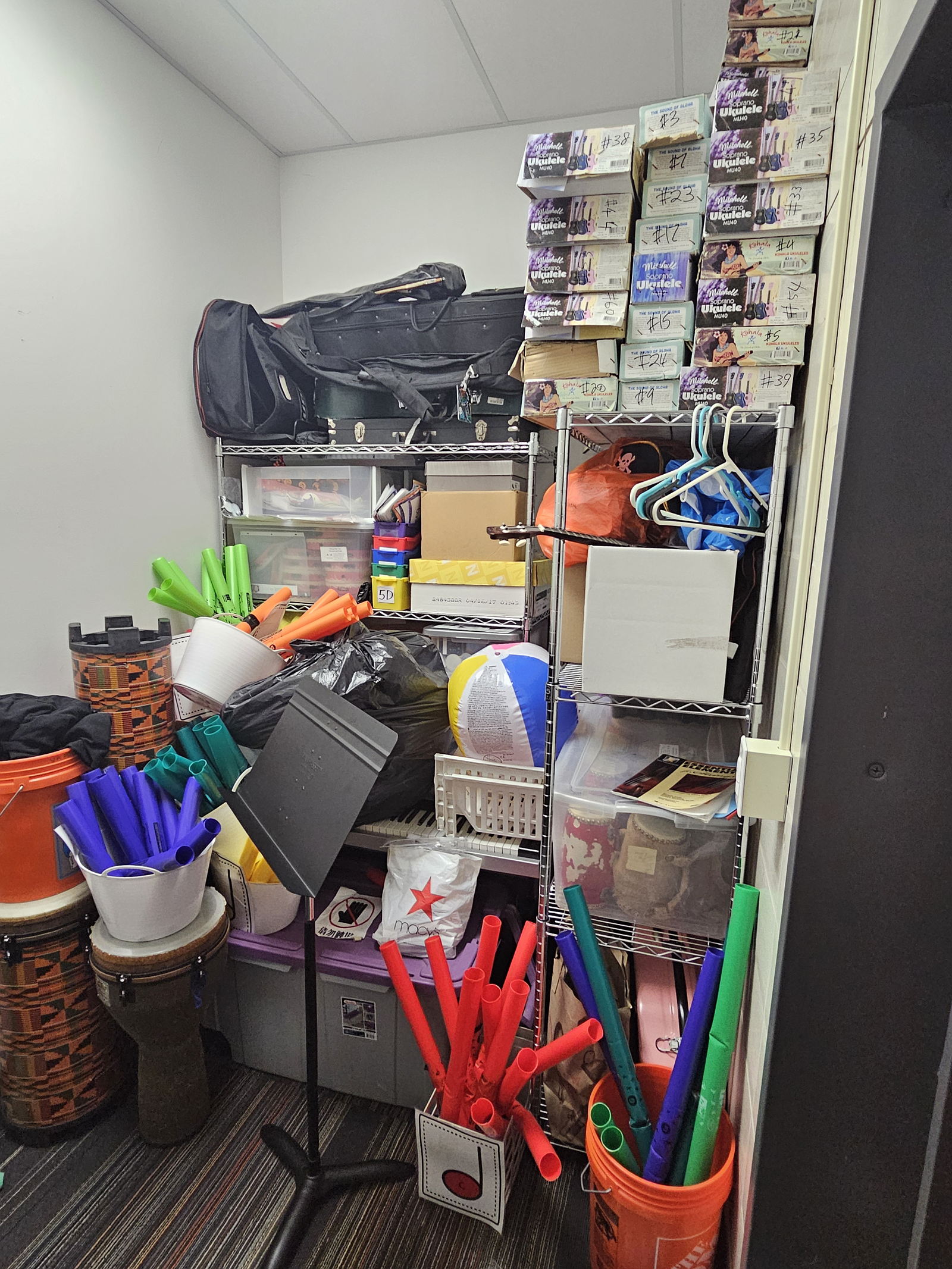 With your help, we’ll install modern storage systems, improve room layouts, and make functional and acoustic upgrades so students and teachers can focus more on music and less on moving equipment. Clearly, we need some upgrades (see pictures below)!