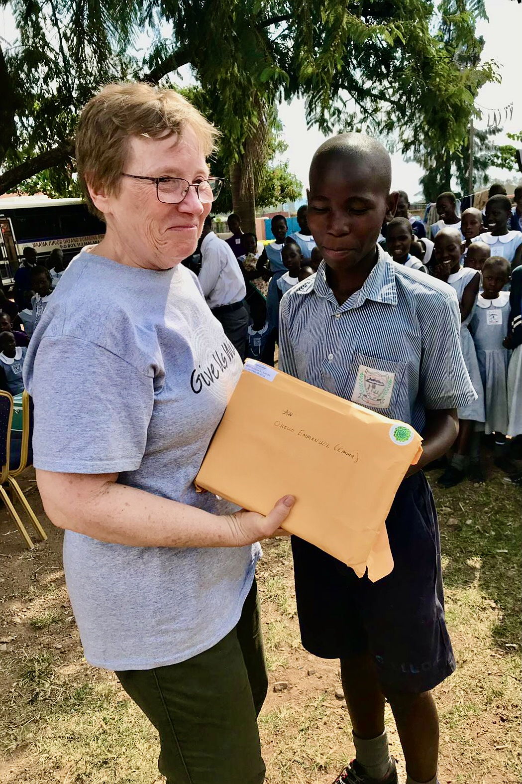 My daughter Janet first introduced me to Give Us Wings. In 2018, I became the sponsor of a young boy named Emmanuel, who was about 11 years old at the time. In 2019, I had the incredible opportunity to travel to Uganda with GUW, where I met Emmanuel at the boarding school he is able to attend because of sponsorship. I also visited his family in the slums and met people from several villages who shared how their lives had changed through co-op farming programs that GUW helped establish years earlier.