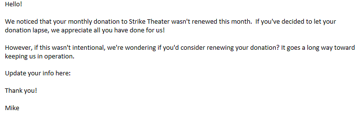 Strike TheaterGrover & I are asking for your support to raise $$ for Strike’s welcoming & creative community!