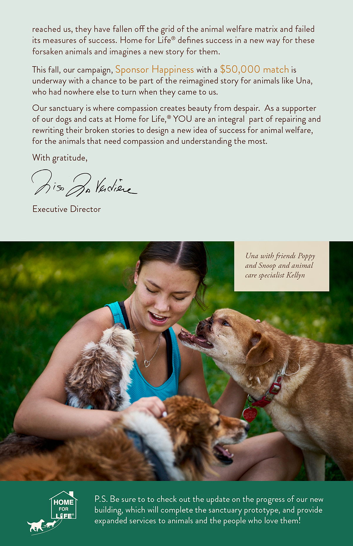 Home for Life's Sponsor Happiness campaign, with a $50,000 Match Challenge, features Una: read the story below!