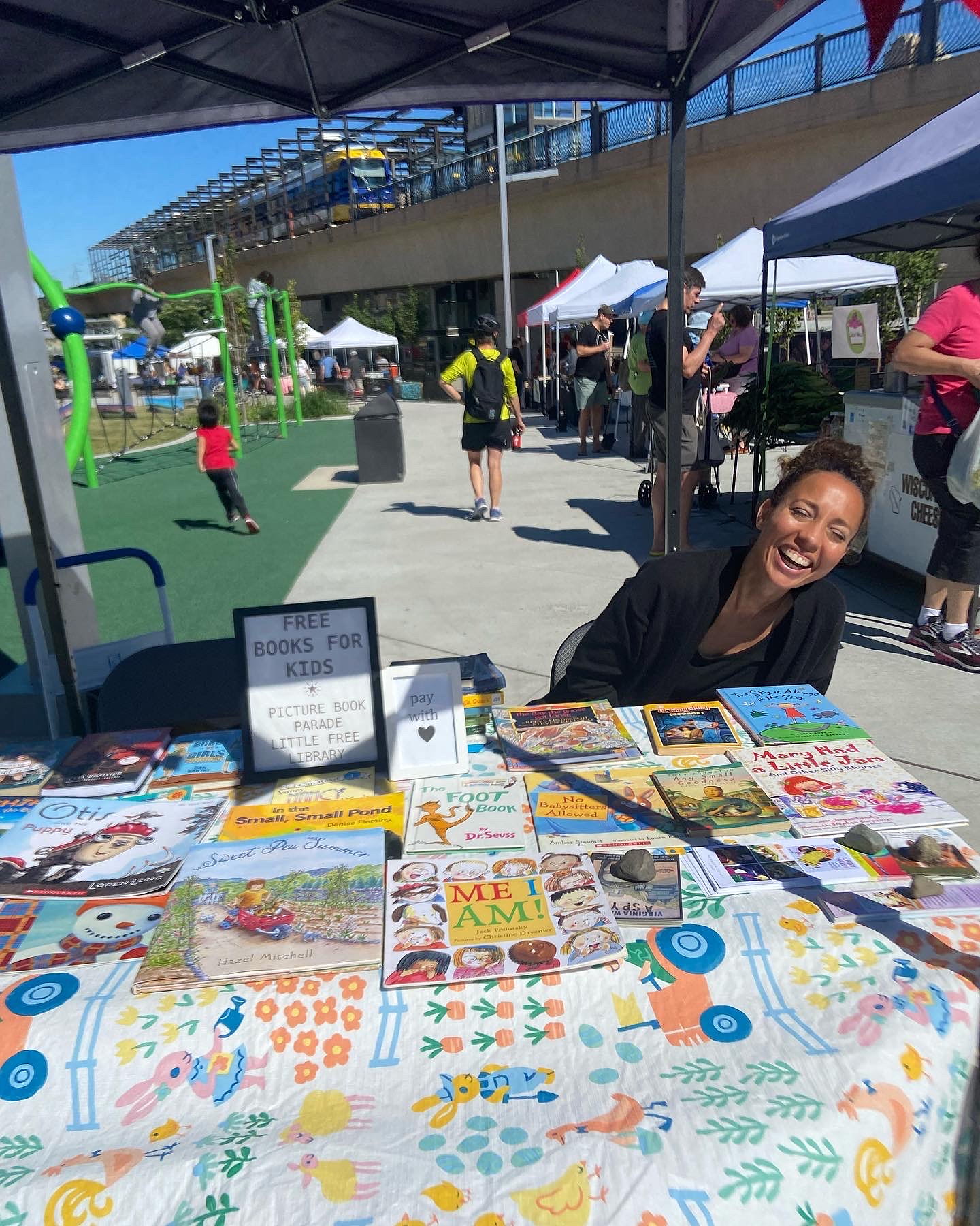 We offer a new story stroll every Saturday for families to enjoy as they enter the Midtown Farmers Market. The season runs from May to the end of October. We also curate a Little Free Library in our author tent. Families can return weekly for new books.