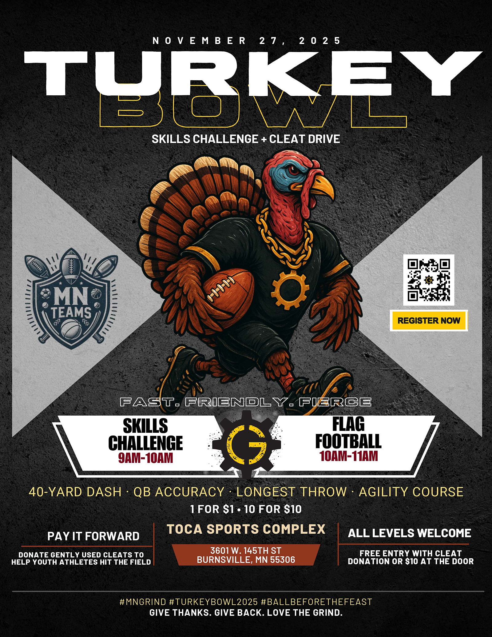MN Teams AssociationThanksgiving Turkey Bowl fundraiser: family fun, cleat drive, and support for youth sports! 🦃🏈