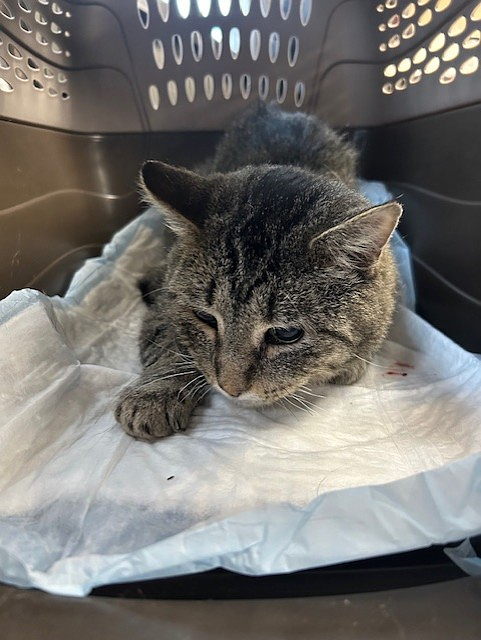 Throughout his time with us, he went back for check-ups for his jaw where we did see some infection and had to treat it with medicine. As of 10/29/25, the wire in his jaw was taken out and he is now adjusting to eating hard food and learning how to navigate with one eye.