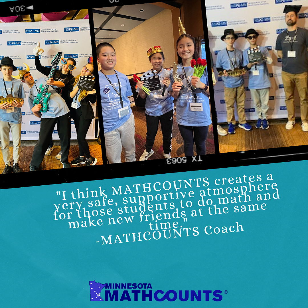 Minnesota MATHCOUNTS is the flagship STEM outreach program of the Minnesota Society of Professional Engineers. MnSPE members started MATHCOUNTS in Minnesota and have kept it going for more than 40 years. Much of the coordination in serving middle school math students around the state for competitions is done by MnSPE members.