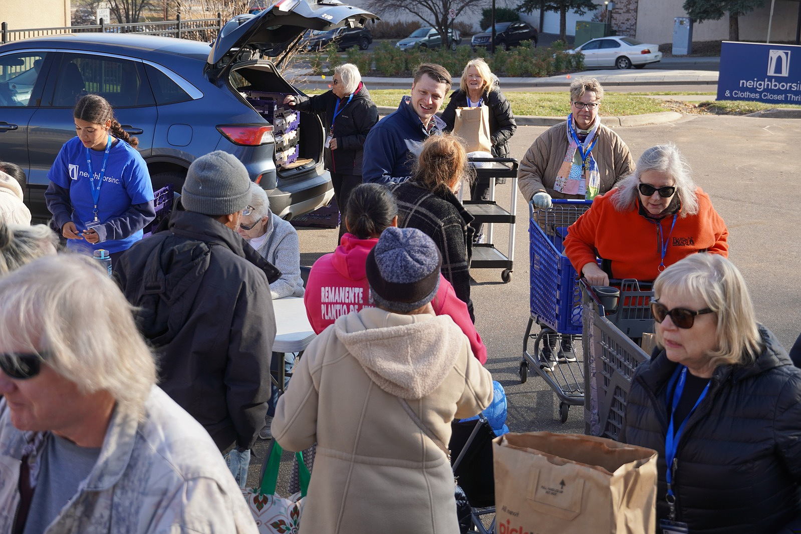 Through a combined effort of Neighbors’ staff, volunteers, and community supporters, Neighbors broke a new record today during our Thanksgiving distribution, serving 327 households consisting of 341 children, 429 adults, and 215 seniors, all within two hours. The need was great, yet everyone rose to the challenge, and we cannot thank you all enough for ensuring the success of today’s distribution.