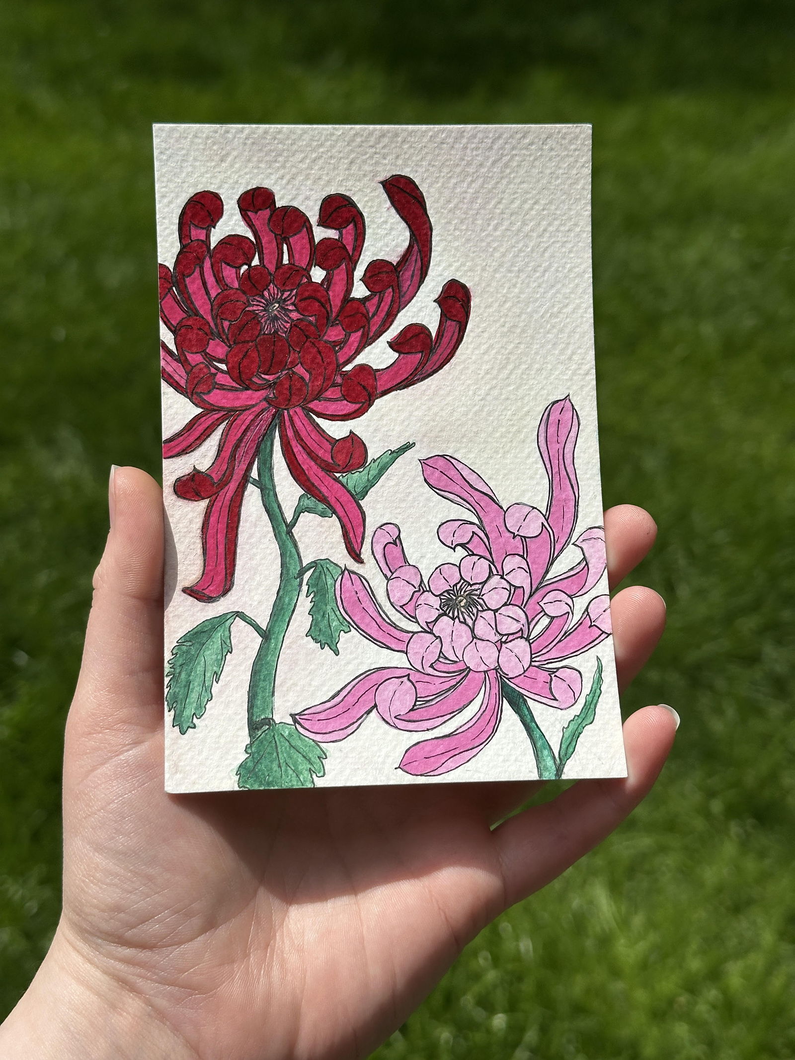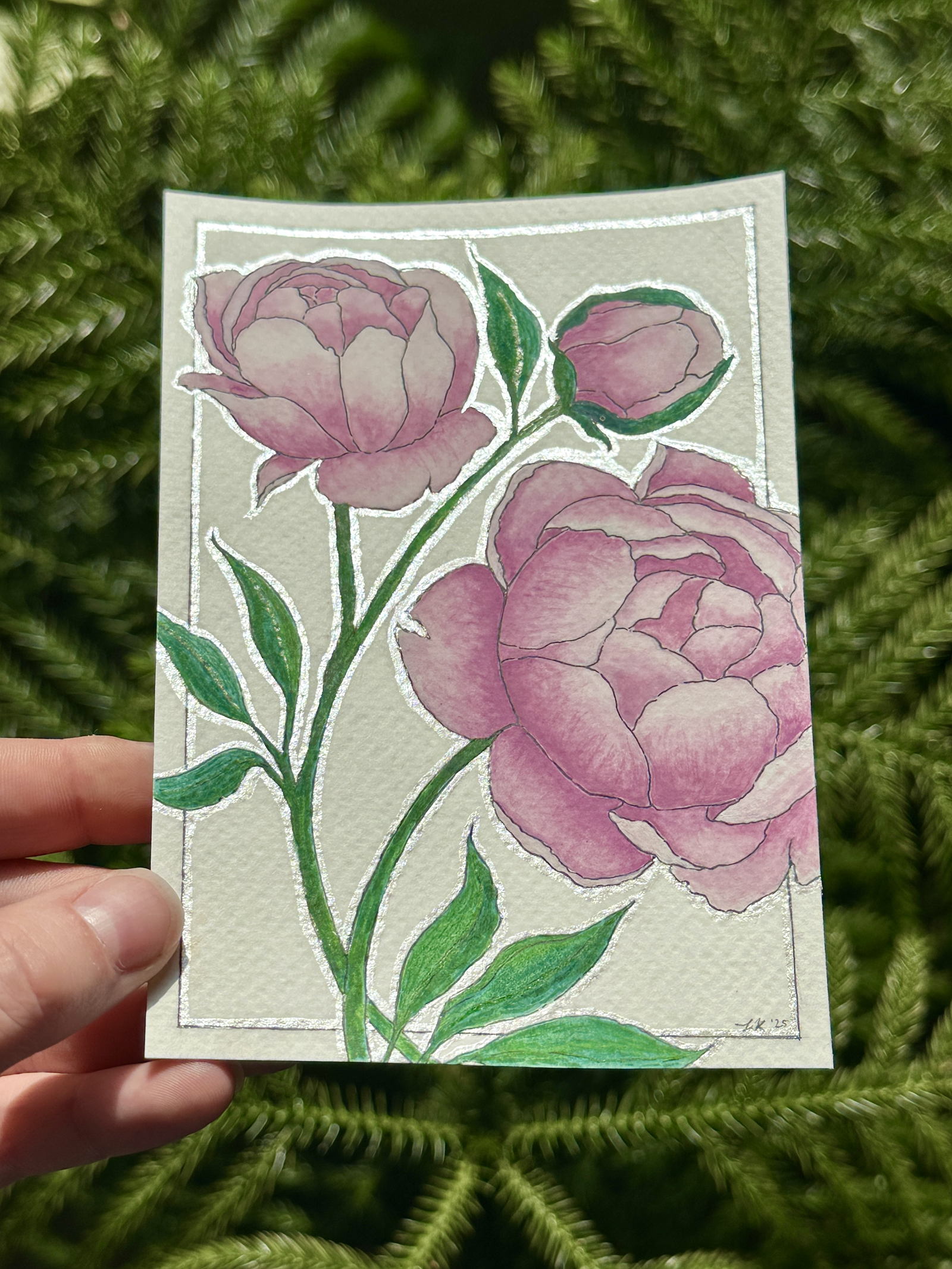 Any donation of $20 or more will receive one postcard sized floral painting made by yours truly!